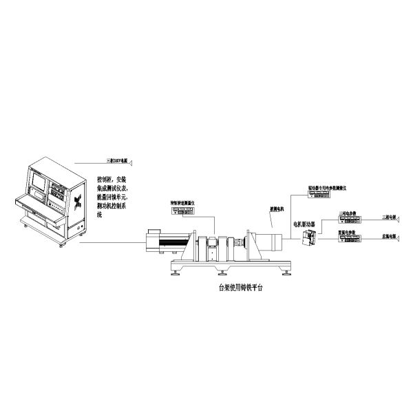 2.測(cè)試原理:測(cè)試過(guò)程中,電機(jī)啟動(dòng)后帶動(dòng)電力測(cè)功機(jī)旋轉(zhuǎn),通過(guò)計(jì)算機(jī)給電力測(cè)功機(jī)程控加載,同時(shí)電腦上自動(dòng)記錄數(shù)據(jù),加載過(guò)程中記錄每個(gè)點(diǎn)的數(shù)據(jù),待所有數(shù)據(jù)記錄后,生成報(bào)表和曲線。